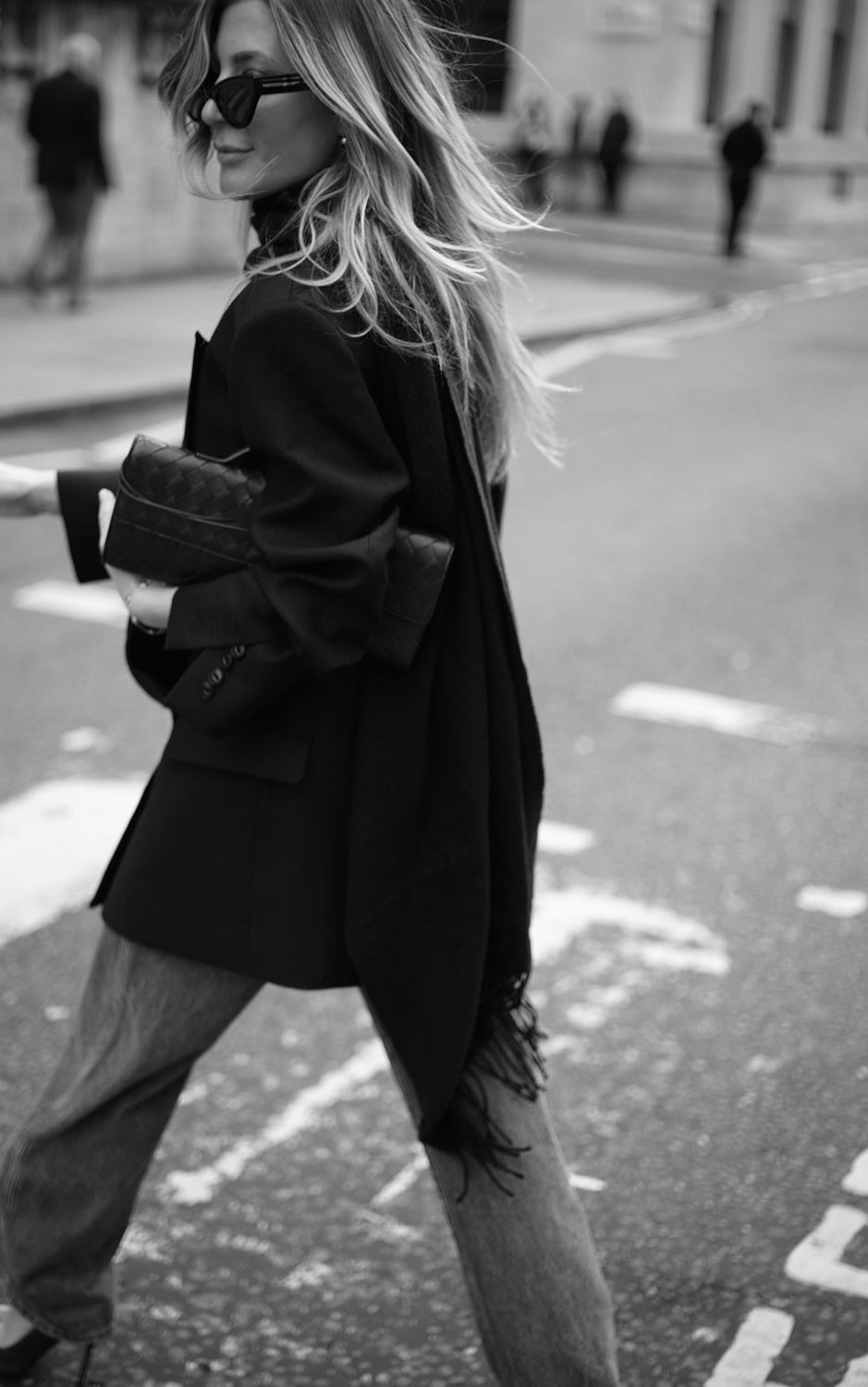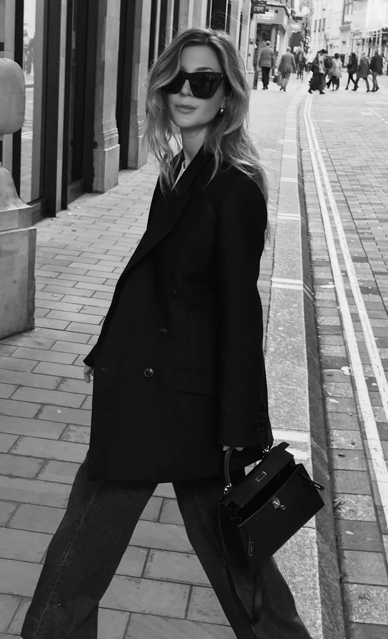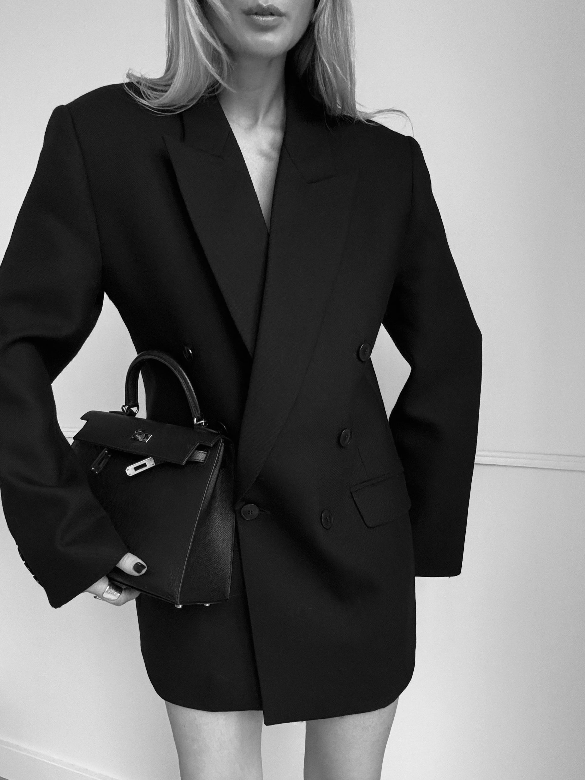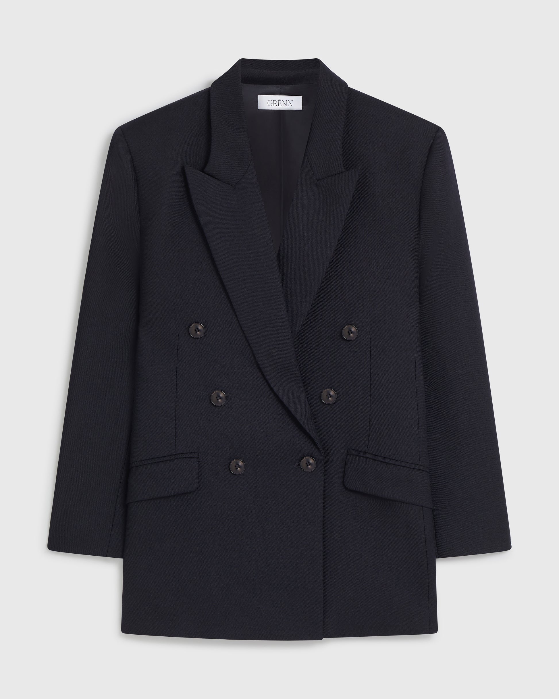 This blazer is tailored from Italian RWS certified wool in a powerful double-breasted silhouette with peak lapels.